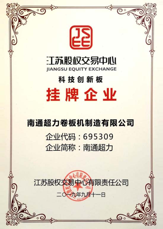 南通超力卷板機(jī)制造公司承擔(dān)國(guó)家火炬計(jì)劃